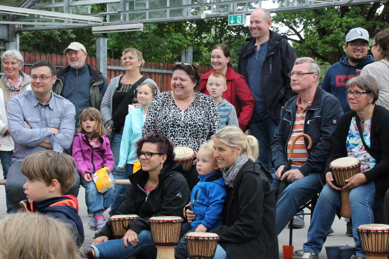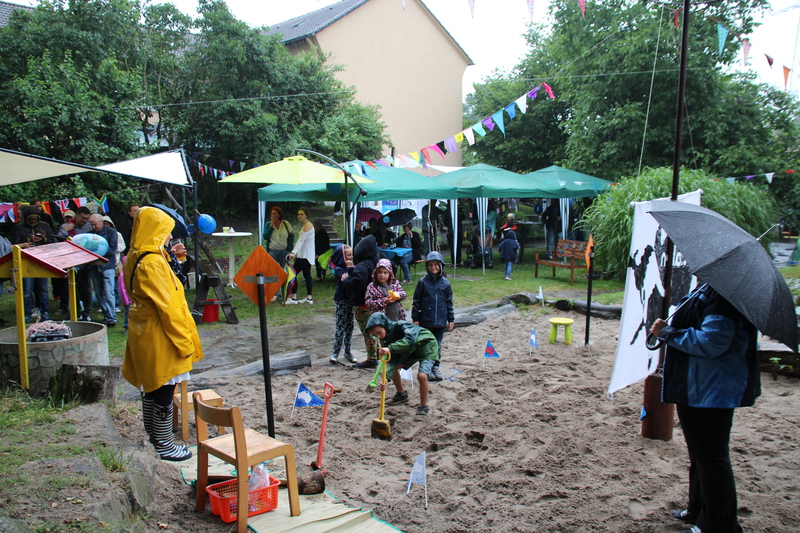 In diesem Jahr hat uns der liebe Petrus wettertechnisch leider einen Strich durch die Rechnung gemacht. Trommeln und eine Reise um die Welt war in diesem jahr das Motto. Aber das Wetter konnte der guten Stimmung keinen Abbruch verschaffen. Wir verlagerten das Trommeln einfach in das gegenüberliegende freistehende Gebäude und zogen uns für die Spiele auf dem Außengelände Regenklamotten an. Und dann zum Abend kam sie doch noch raus, die Sonne, und wir konnten in gemütlicher Runde das Sommerfest ausklingen lassen.