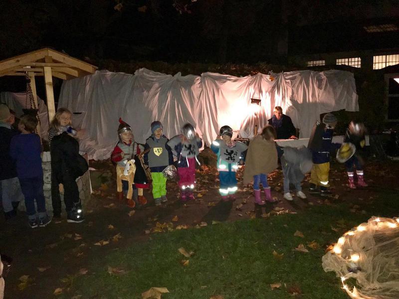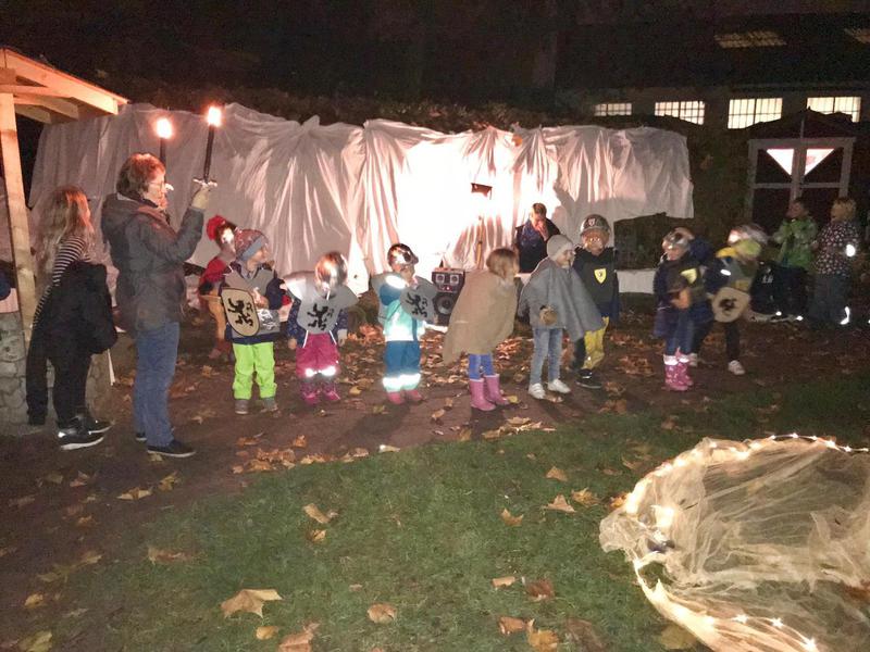 In diesem Jahr fand der St. Martins Umzug am 12. November 2018 statt. Wie jedes Jahr wurden am Vormittag zusammen mit Marina (Hauswirtschaftlerin) und einigen Eltern fleißig Brezel gebacken und Schmalzstullen und Honigbrote mit Butter geschmiert. Nachmittags trafen sich dann alle Kinder, Eltern, Großeltern und Freunde zum gemeinsamen Laternenumzug. Im Anschluss fand ein kleines Fest auf dem Außengelände der KiTa statt. Die Vorschulkinder führten das Martinsspiel auf und die etwas jüngeren Kinder führten einen wundersschönen Lichtertanz auf. Die leckeren Schmalzschnitten, das Honigbrot und der Kinder- sowie Erwachsenenpunsch rundeten die Festlichkeit ab.